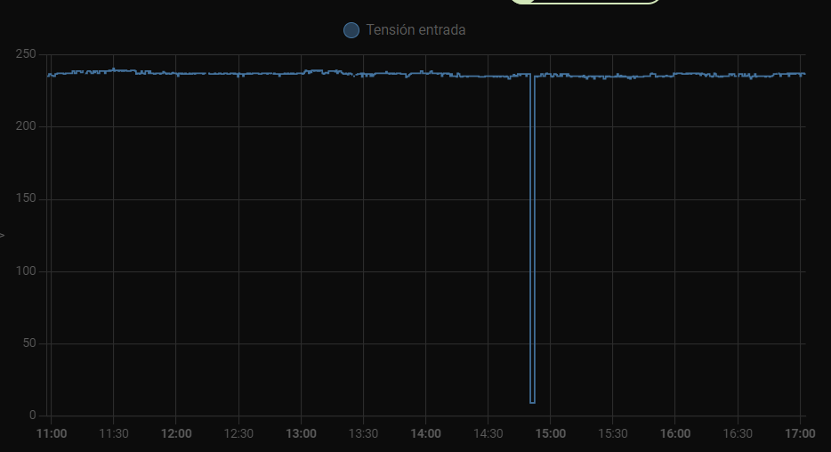 Si lo hemos puesto en la sección recorder veremos como baja el nivel de bateria cuando quitemos la tensión de entrada al SAI
